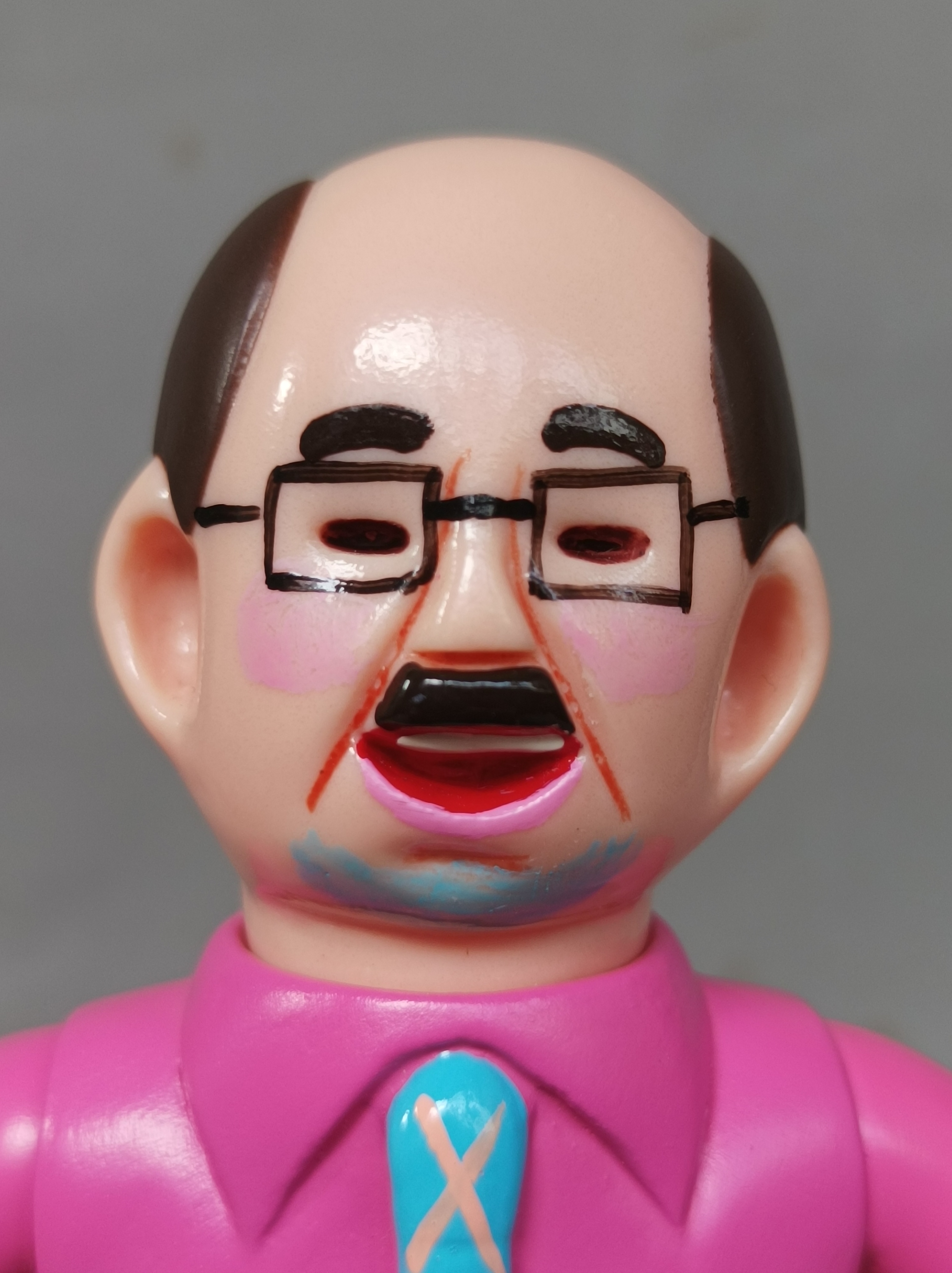 This is my favourite character created by Dehara Yukinori. It's a small figure with 3 points of articulation and its height is about 6.5 inch tall. I like the colour combination of the outfit especially his trad pink shirt. It looks bright and outstanding!